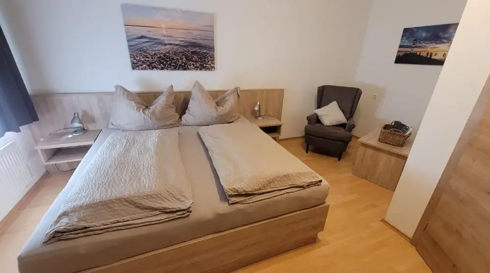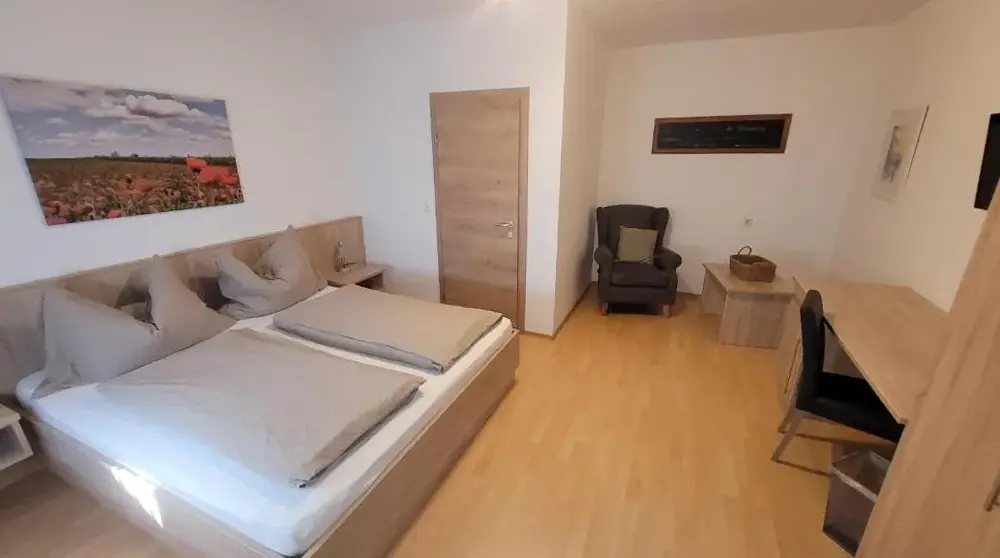 Ich wurde herzlich empfangen, und mir wurde alles gezeigt. Abends genoss ich ein Glas Wein auf der schattigen Terrasse inkl. nettem Plausch mit den Gastgebern. Frühstück reichhaltig, guter Kaffee (Vollautomat) ideal für Kaffeeliebhaber. Zimmer sehr sauber und gute Größe. Trotz Kurzaufenthalt sehr entschleunigend!